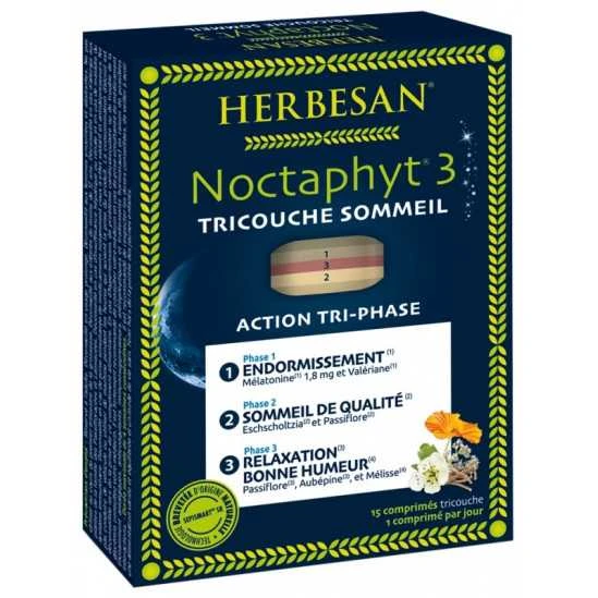 - Noctaphyt de Herbesan est un complément alimentaire à base de 6 plantes et de magnésium, qui permet de favoriser un sommeil serein.