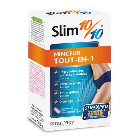 Slim 10/10® est issu de la recherche des laboratoires Nutreov. Sa formule unique associe : du Slim Xpro composé de Sinetrol® Xpur, un complexe breveté, qui a fait l?objet de 3 essais cliniques publiés prouvant son efficacité sur :